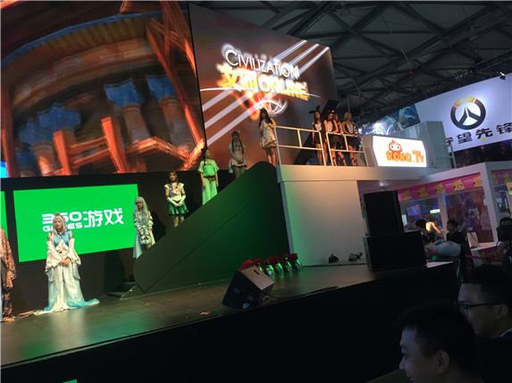 【澤鳴租賃】360展臺(tái)主體給人呈現(xiàn)一種綠色的感覺(jué),向玩家傳達(dá)綠色游戲的概念。穿著格式古武服飾,展示各種游戲內(nèi)人物,展臺(tái)現(xiàn)場(chǎng)還有很多電腦與手機(jī)可以讓玩家體驗(yàn)其旗下的多款游戲。