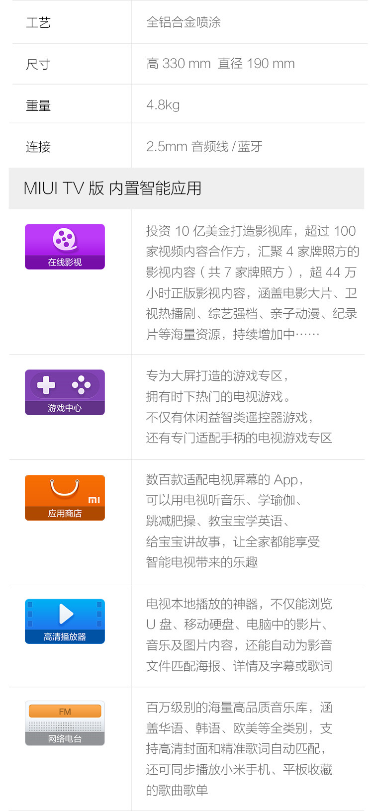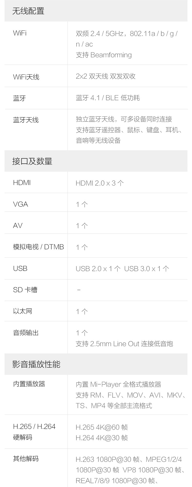 | CPU | MStar 6A928 Cortex-A17 四核 1.4GHz |
