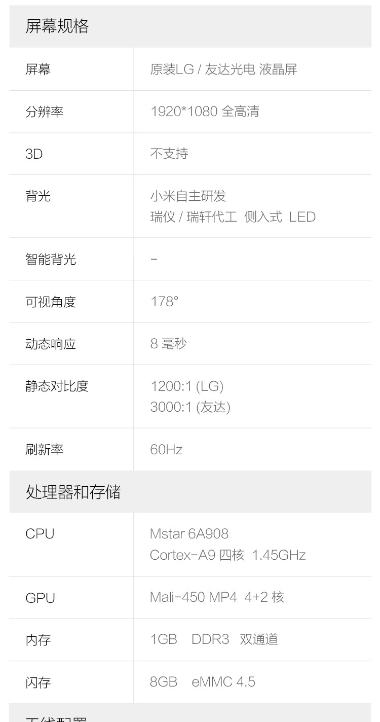 | CPU | Mstar 6A908 Cortex-A9 四核 1.45GHz |