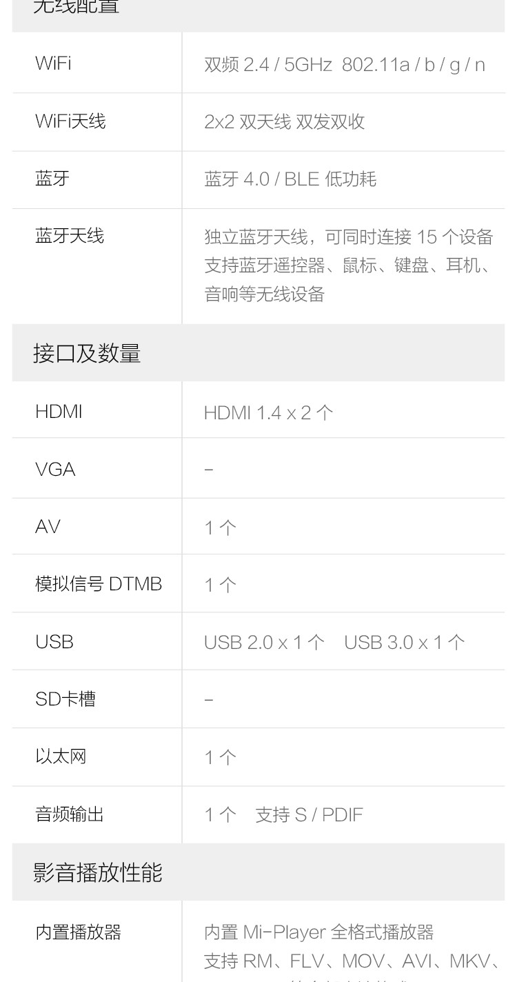 | USB支持視頻格式 | 支持 RM、FLV、MOV、AVI、MKV、TS、MP4 等全部主流格式 |