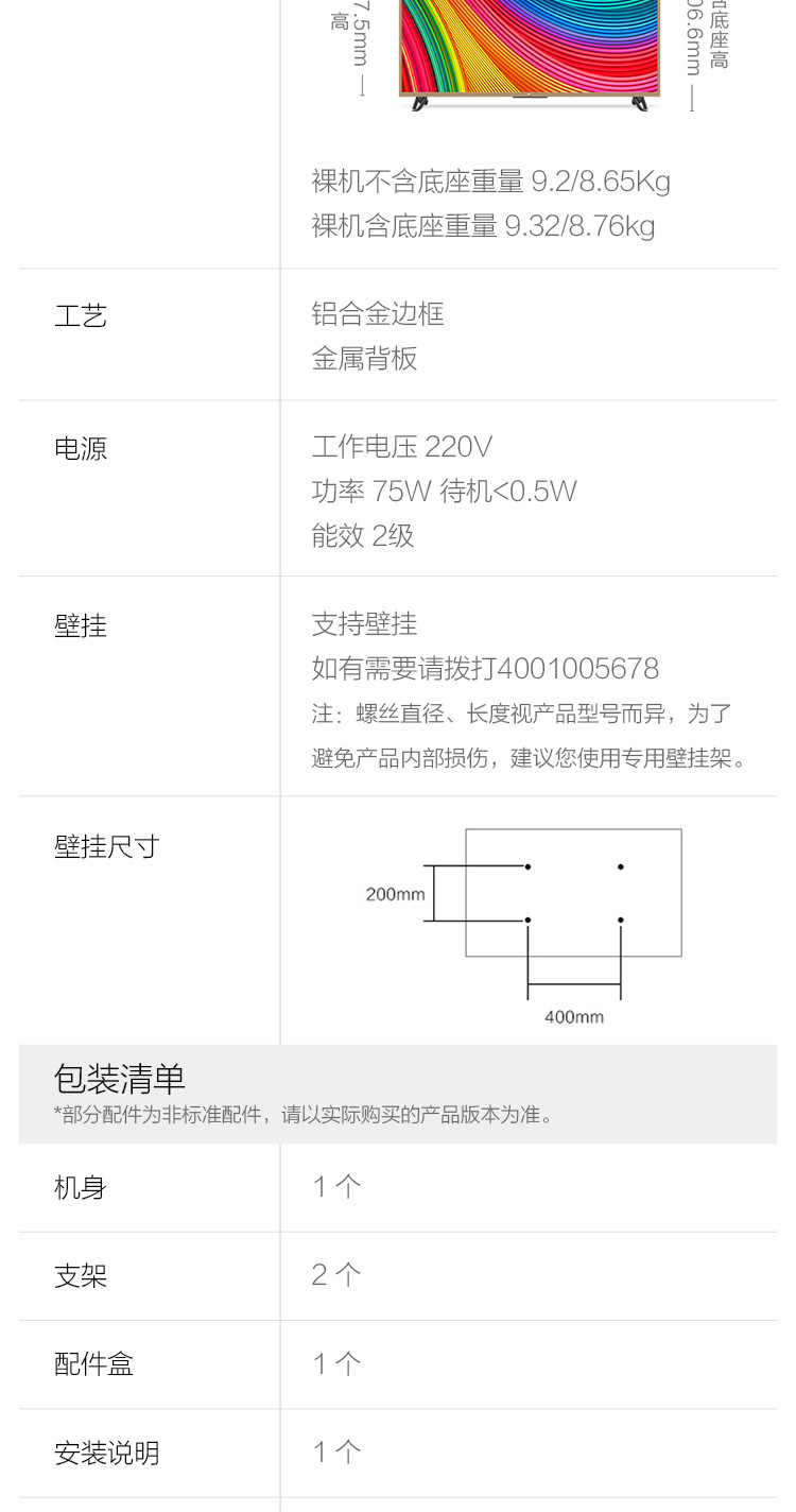 | 屏幕尺寸 | 43英寸 |